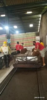 - The results that have been passed are then weighed as much as 35-0.5 kg and then press to form a bandela with a size of 17 cm x 36 cm x 72 cm then passed the plate conveyer and Metal Detector. Metal Detector will check the metal content of the product